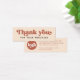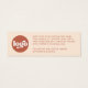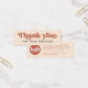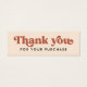 Vielen Dank für Ihren Kauf Mini-Insert-Karte mit weißem Text "Danke" in einem Retro-Stil Schriftart. Terracotta-brauner (bzw. benutzerdefinierter) Text auf einem hellen Hintergrund. Fügen Sie auf der Rückseite Ihr eigenes Logo hinzu. Mit dem Designwerkzeug können Sie Farben ändern, Elemente verschieben und verändern.
