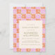 Feiern Sie stilvoll mit dieser lebendigen, in Retro inspiriert Abschlussfeier. Mit einem kühnen, rosa und orangefarbenen Blumenmuster, das an Vintage Fliesendesigns erinnert, ist dieser eindrucksvolle Einladung perfekt für diejenigen, die eine spielerische und dennoch raffinierte Ästhetik Liebe haben. Der zentrale Textbereich ist in warmen Farbtönen gerahmt, sodass sich der Name und das Party des Absolventen wunderschön herausstellen können. Eine lustige und einzigartige Wahl für eine fröhliche Feier!