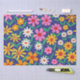 Retro Boho Pink orange Blumenmuster auf marineblau Seidenpapier