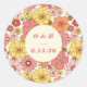 Retro Boho Pink Yellow Floral Wedgram Runder Aufkleber