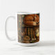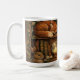 A cozy retro-inspired design featuring a charming bookshelf filled with vintage books, delicate botanical accents, cute woodland animals and a comforting cup of tea or coffee.