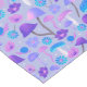 Diese Tischdecke ist mit niedlichen illustrierten Pilzen und Blume in einer lila und türkisblauen Farbpalette dekoriert.