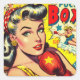 Retro Boxing Girl-Comicen Quadratischer Aufkleber