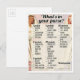 Dies ist ein Vintages Brautparty-Spiel. Ich bin erstaunt, dass es sogar damals eine Frage gibt, ob man eine Handfeuerwaffe in der Handtasche hat. Es ist 20 Punkte wert!! Auch eine i-Phone Frage. Jedenfalls ist es ein unglaublich witzig Spiel für Brautpartys.