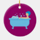 Diese hübsche Retro-Badewanne mit Girl-Illustration ist mit einer niedlichen Kätzin mit blauen Haaren, rosa Perlenschmuck und einem Lächeln in einem blauen Wanne ausgestattet. Diese lustige Vintage inspirierte Cartoon-Kunst ist das ideale Geschenk für jeden, der die kitschige und farbenfrohe Original-Indie-Vektorkunst Liebe!