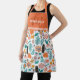 Mehrfarbige Schürze perfekt für den Herbst mit einem Muster von Blume, Blätter und Bugs in einem skurrilen Stil. Fügen Sie Ihren Namen und das Monogramm auf der orangefarbenen Oberseite der Schürze hinzu.