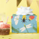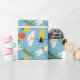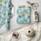 Zieh ihre Geschenke mit einem Bug auf. Dieses Packpapier zeigt Abbildungen von Bugs im fett- und farbenfrohen Retrostil mit Käfer, Motten, Libellen, Kikaden und Grashüpfern in Weiß, Grün, Gelb, Rot und Schwarz vor einem hellblauen Hintergrund.