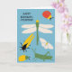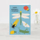 Diese lustige, bug-thematische Grußkarte ist bereit, mit Ihrer eigenen Nachricht auf der Vorderseite und auf der Innenseite dieser Karte personalisiert zu sein. Erstellen Sie die perfekte Karte für jeden Anlass. Sie finden hier fette, moderne Retro-Illustrationen von Käfern, Libellen, Motten, Zicada und einem hellblauen Set, das es zum idealen Begleiter für alle macht, die Insekten Lieben.
