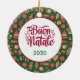 Dieses fabelhafte Weihnachtsvolkskunst grüne runde Keramik-Ornament mit einem Muster von Santas, Lebkuchenmännern, Weihnachtsbäumen, Ornamenten, Engeln und Geschenken, die Fröhliche Weihnachten in italienischer "Buon Natale" sagt und das Jahr würde auf Ihrem Weihnachtsbaum phantastisch aussehen. Es ist so festlich und passt zu jeder Weihnachtsdekoration - es ist rustikal, aber zurückhaltend und modern und doch traditionell! Holen Sie sich ein paar Geschenke für Lieben...sie werden es Liebe!