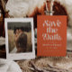 Retro und elegante Save the Date-Karte mit bohem Schriftart, der "Save the Date" in gebrannter Orange steht. Sie können ein Foto auf der Rückseite hinzufügen.