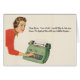 Ein Retro Büroangestellter lehnt sich über ihrer Schreibmaschine, um einen, Buchstaben zu ihrem abscheulichen, schrecklichen Chef zu schreiben anzufangen. Sie lächelt ein Selbst-erfülltes Lächeln als sie schreibt, "lieber Chef: Zuerst möchte ich Sie mich kennen lassen schreibe dieses mit meinem mittleren Finger…" Das Innere der Karte ist für Ihre eigene Mitteilung leer.