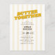 This Bridal Shower Invitation brings retro charm and playful personality at a price that feels just as good as it looks. The bold heading Butter Together is set in a warm retro serif font that delivers instant character and a smile-worthy nod to the couple who was always meant to be. A crisp yellow and white striped background ties it all together with vintage sunshine energy that feels festive, fresh, and totally on-theme.