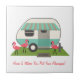 Eine Kachel mit einer Abbildung eines Retrocampers mit rosa Flamingos im Hof. Im Text steht: "Zuhause ist, wo du deinen Flamingos hinlegst!"