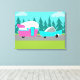 Dieser Retro Camper / Trailer und Autobarkter Canvas Print verfügt über einen modernen, minimalistischen Cartoon zeichnend Mitte des Jahrhunderts, der Ihnen verlasse, die offene Straße zu nehmen. Dieses Design ist eine Hommage an die 1950er Jahre und bietet ein Vintages türkisfarbenes Auto mit weißem Oberteil, das einen kitschigen Trailer zu seinem Endziel zieht. Der perfekt restaurierte Retro RV hat eine heiß rosa Unterhälfte, eine weiße obere Hälfte und einen türkisfarbenen Blitz, der beide trennt. Die Tür an der Seite des Campers ist ebenfalls türkis. Der letzte Akzent ist der heiß rosa Flügel, der von der Rückseite dieser Zuhause auf Rädern hervorragt. Die glücklichen Camper fahren eine graue Straße hinunter. Die Straße ist von üppigem, grünem Gras umgeben. Im Hintergrund können wir die aquamarinen Silhouetten eines echten Zedernwaldes sehen, vor einem Aquahain mit puffigen, hellblauen Wolken. Dieses Design ist perfekt für alle, von pensionierten Hippies, schwindenden Hipstern oder für alle, die will, einige großartige Erinnerungen aus der Kindheit zu erleben. Das Beste daran ist, dass niemand frage: "Sind wir noch da?"