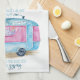 Retro Camper-Wohnwagen-Blau | rosa u. weißes Geschirrtuch