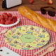 Retro-Camping-Teller zum Thema Papier. Retro-Design, werden Sie sich nach dem großen Outdoor sehnen! Bearbeiten von Text und Bild. Sie können Ihre eigenen Wörter hinzufügen oder das mittlere Bild ganz löschen, wenn Sie eine schlichte Platte bevorzugen. Rette auch mit dem Abwasch!