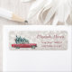 Aquareller Retrowagen mit Kiefernbaum auf glitzerndem Bukahintergrund. Ein elegantes und raffiniertes Design. Passen Sie Ihre Namen und Adressdaten an.