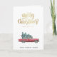 Aquareller Retrowagen mit Kiefernbaum auf weißem Hintergrund.