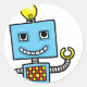 eine digitale Abbildung eines lächelnden blauen Retrororoboters mit einer Glühbirne auf dem er seine Arme herumfleckt.