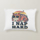 A cozy rectangular pillow featuring a sleepy retro cat with a bold nap-loving attitude.