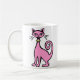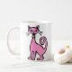 Eine rosa Pussy-Katze im Retrostil, mit einem goldenen, rautengepolsterten Kragen. Ein Original gezeichnet von Nicolette Amanda Berry.