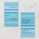 Blaue tonal Streifen vereinbaren sich auf dieser Visitenkarte, um eine moderne und extrem vielseitige Karte herzustellen. Die Typografie ist sauber und gibt eine berufliche Luft. Ein Firmennamen, eine Beschreibung und eine Website drucken auf der Front in den hellblauen Platten, während die Erholung der Firmeninformationen und persönlicher Kontaktdruck auf der Rückseite. Verfügbar in den abwechselnden Farben.