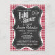 Retro Chalkboard; Carmine Red Gingham; Checked Einladungspostkarte