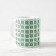 Funky geometrische Retro Charm Quadrate gemusterte Tasse in dunkelgrün. Diese gemusterte Retro-Tasse ist die perfekte Wahl für jemanden, der will, seinen Morgenkaffee stilvoll zu trinken! Original-Muster erstellt von Superstarbing Designs.