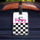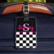 Make a statement on the court with this retro-inspired luggage tag featuring a bold black-and-white checkerboard pattern and vibrant hot pink Name Monogram text. Available in both black and white background options, this eye-catching design combines sporty energy with vintage flair. Perfect for players who love a fun, confident look while showing off their competitive side.