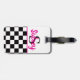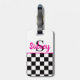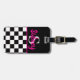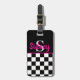 Retro Checkerboard Neon Pink Name Monogram Gepäckanhänger