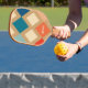 Retro Checkered Beige Blue Orange Monogram Pickleball Schläger