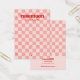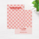 Diese Schmuckkarte ist mit einem rosa, karierten Hintergrund und einem kontrastierenden roten Schriftart ausgestattet. Fügen Sie Ihre Firmeninfo und Social Media oder Website auf der Rückseite der Karte hinzu.