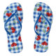 Diese Retro Cherries Flip Flops zeigen mein rotes Kirschmuster auf blauem Gingham. Ideal für den Sommer im Land.