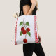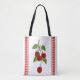Die Retro Cherries Tote Tasche ist mit einem Acrylgemälde aus Kirschen mit einem roten Gingham Streifen auf jeder Seite für einen Vintagen Look ausgestattet.