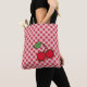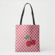 Helle rote Kirschen und Gingham dekorieren diesen stilvollen Totbeutel. Das Design stammt aus der Originalkunst.