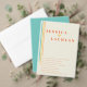 Mit unserem Retro-schicken Gästebuch erfassen Sie die Erinnerungen Ihres besonderen Tages. Dieses Gästebuch wurde als Ergänzung zu Ihrem Hochzeitstil konzipiert und bietet einen hellgelben Hintergrund mit drei aquamarinen, gelben und orangefarbenen Streifen auf den links. Die Initialen des Paares werden hervorgehoben in fett orange dargestellt, getrennt durch ein einzigartiges gelbes "+" Symbol. Im Inneren ist genug Platz für die Gäste, um herzliche Botschaften und wohltuende Wünsche verlassen. Die hintere Abdeckung ist eine ausgeklügelte aquamarine, die die Retro-Farbpalette ergänzt. Ideal für Paare, die einen stilvollen und zusammenhängenden Weg suchen, um die Freude und Liebe ihres Hochzeitstages zu bewahren.