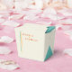 Freuen Sie sich auf unsere eleganten Retro-Gaumenkästen, die perfekt zu Ihrem Hochzeitssmotiv passen. Diese hübschen Boxen sind mit einem hellgelben Hintergrund mit aquamarinen Akzenten und drei lebhaften Streifen in aquamarin, gelb und orange dekoriert. Das Design besteht aus fett orangefarbenem Text und einem gelben "+"-Symbol für "und", das einen modernen, aber nostalgischen Flair hinzufügt. Ideal, um Leckereien oder kleine Geschenke vorzustellen, sind diese Geschenkdosen eine stilvolle und kohäsive Ergänzung zu Ihrer Hochzeitsfeier.
