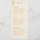 Beeindrucken Sie Ihre Gäste mit unserem schicken Retro-Hochzeitsmenü. Dieses Menü wurde speziell für Ihr Hochzeitsthema entworfen und bietet einen hellgelben Hintergrund mit drei dynamischen Streifen in Tee, Gelb und Orange auf der linken Seite. Ihre Namen in fett orangefarbenem Text, ergänzt durch ein einzigartiges gelbes "+" Symbol für "und". Die köstlichen Details des Essens werden auf der Rückseite der Speisekarte mit den drei Streifen elegant aufgelistet und verleihen dem Raum eine moderne und nostalgische Note. Ideal für Paare, die ihre Hochzeitsarbeit ihren einzigartigen und farbenfrohen Feiertag widerspiegeln möchten.