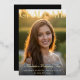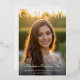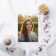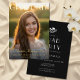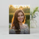 Diese Retro-Chic-Einladung zur Abschlussfeier in Schwarz mit Goldfolie vereint modernen Luxus mit einem Hauch von Retro-Charm und schafft ein herausragendes Design für Familien, die etwas Besonderes suchen. Die Vorderseite zeigt das Foto des Absolventen mit einer warmen, festlichen Atmosphäre, während die schimmernden Goldfolie-Akzente einen unverkennbar hochwertigen Finish verleihen. Die retro-inspirierte Typografie gibt dem Layout ein stilvolles, redaktionelles Gefühl, das Kunden anspricht, die eine ausgefeilte und dennoch unverwechselbare Ankündigung suchen.