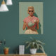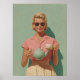 Treten Sie ein in einen sonnigen Augenblick zeitlosen Charmes mit diesem Vintag inspirierten Kunstwerk. Eine gediegene Frau, die Mitte des Jahrhunderts mit einer Rose-rosa Bluse, Gingham-Rock und Perlenhalskette gekleidet ist, steht an einer aquamarinen pastellfarbenen Wand. Ihre klassische Blondine und ihre Katzenauge-Sonnenbrille spiegeln die Eleganz der 50er Jahre wider. Sie hält einen Minztee und einen Teekessel, der einen Nachmittagstee mit Retro-Glamour verspricht. Dieses Bild zeichnet sich durch die Eleganz und den Charme vergangener Zeiten aus, die sich perfekt für Liebhaber Vintagen Stils, Retro-Mode und nostalgischer Dekoration eignen. Ideal für Drucke, Plakate und Lifestyle Accessoires, bringt dieses Stück ein warmes, stilvolles Ambiente in jeden Raum oder jedes Produkt. Egal ob Sie Küchenartikel, Wohngestaltung oder stilvolle Schreibwaren entwerfen, dieses Design erinnert an ruhige Eleganz und fröhlichen Charme.