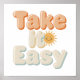 Give yourself permission to slow down and relax with this cheerful "Take It Easy" graphic. Featuring a playful, bubbly font in warm, sunny colors and accented with a cute, smiling sun, this design is all about embracing a laid-back attitude. It's the perfect reminder to find your calm, enjoy the moment, and soak up some good vibes.