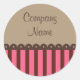 Candy-farbene Streifen und Schokoladenskallops geben diesem Business-Aufkleber Retro-Stil. Verwenden Sie diese Aufkleber für die Verpackung, als Umschlag Aufkleber, etc....Verwenden Sie diese rosa und braunen Aufkleber für eine Bäckerei, Boutique, Geschäft, etc....................................................................................................................................................................................................................................... Die Entwürfe stammen aus der Originalkunst.