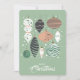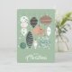 Retro Weihnachtsbaumschmuck auf einem minzgrünen Hintergrund, diese Karte zeigt Ihren Gruß auf der Vorderseite und Ihre Personalisierung und Namen auf der Rückseite. Wählen Sie Matte für schwerstes Papier und High Definition für beste Druckqualität.