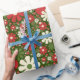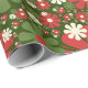 Retro Christmas Floral Fantasy Pattern Red Green Geschenkpapier