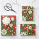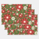 Retro Christmas Floral Fantasy Pattern Red Green Geschenkpapier Set