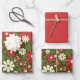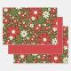 Retro Christmas Floral Fantasy Pattern Red Green Geschenkpapier Set