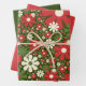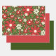 Retro Christmas Floral Fantasy Pattern Red Green Geschenkpapier Set