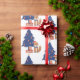 Retro Christmas Fox Illustration Blue Red Geschenkpapier