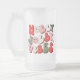 Retro Weihnachten Holly Jolly Vibes Trendy Holidays Beer Brillen Tasse Steins zeigt den Text "Holly Jolly Vibes" in einem Retroskript in rot, grün und rosa Akzent mit Sternen und niedlichen glücklichen Gesichtern. Entworfen von ©Evco Holidays www.zazzle.com/store/evcoholidays