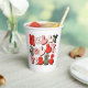 Retro Weihnachten Holly Jolly Vibes Trendy Holidays Kaffee Paper Cups enthält den Text "Holly Jolly Vibes" in einem Retro-Skript in rot, grün und rosa Akzent mit Sternen und niedlichen glücklichen Gesichtern. Entworfen von ©Evco Holidays www.zazzle.com/store/evcoholidays
